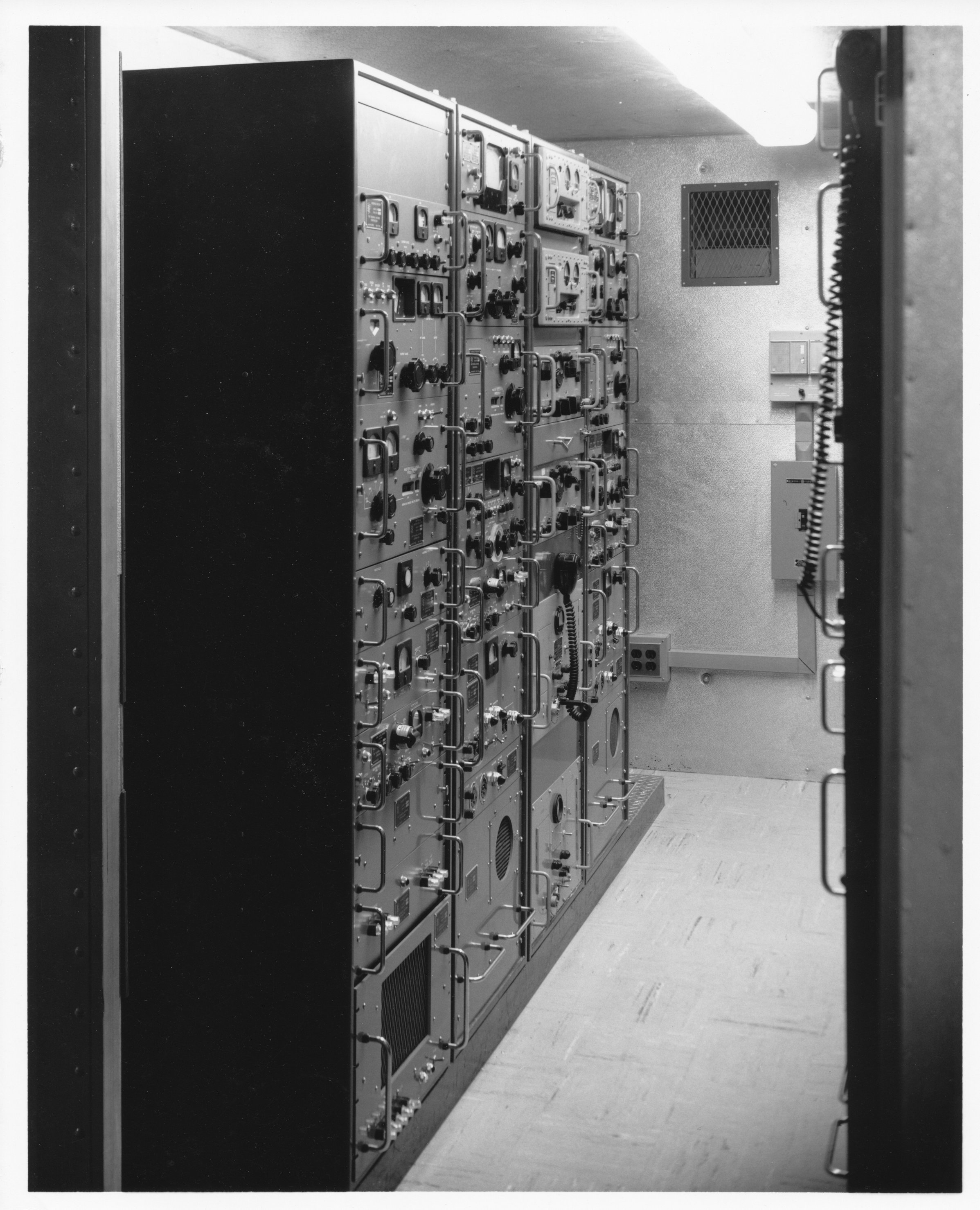 shelter equipment from the doorway. This view shows the VHF