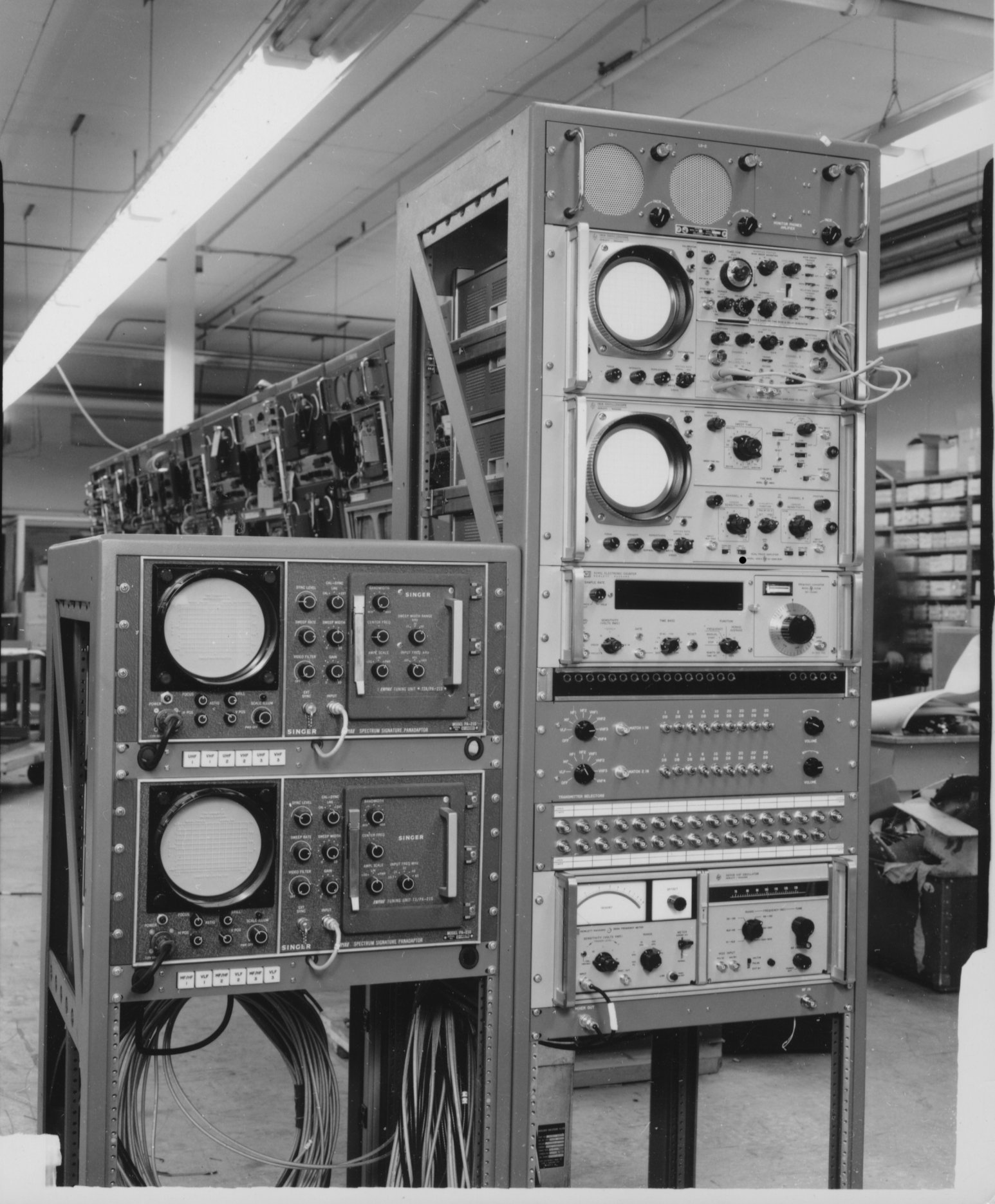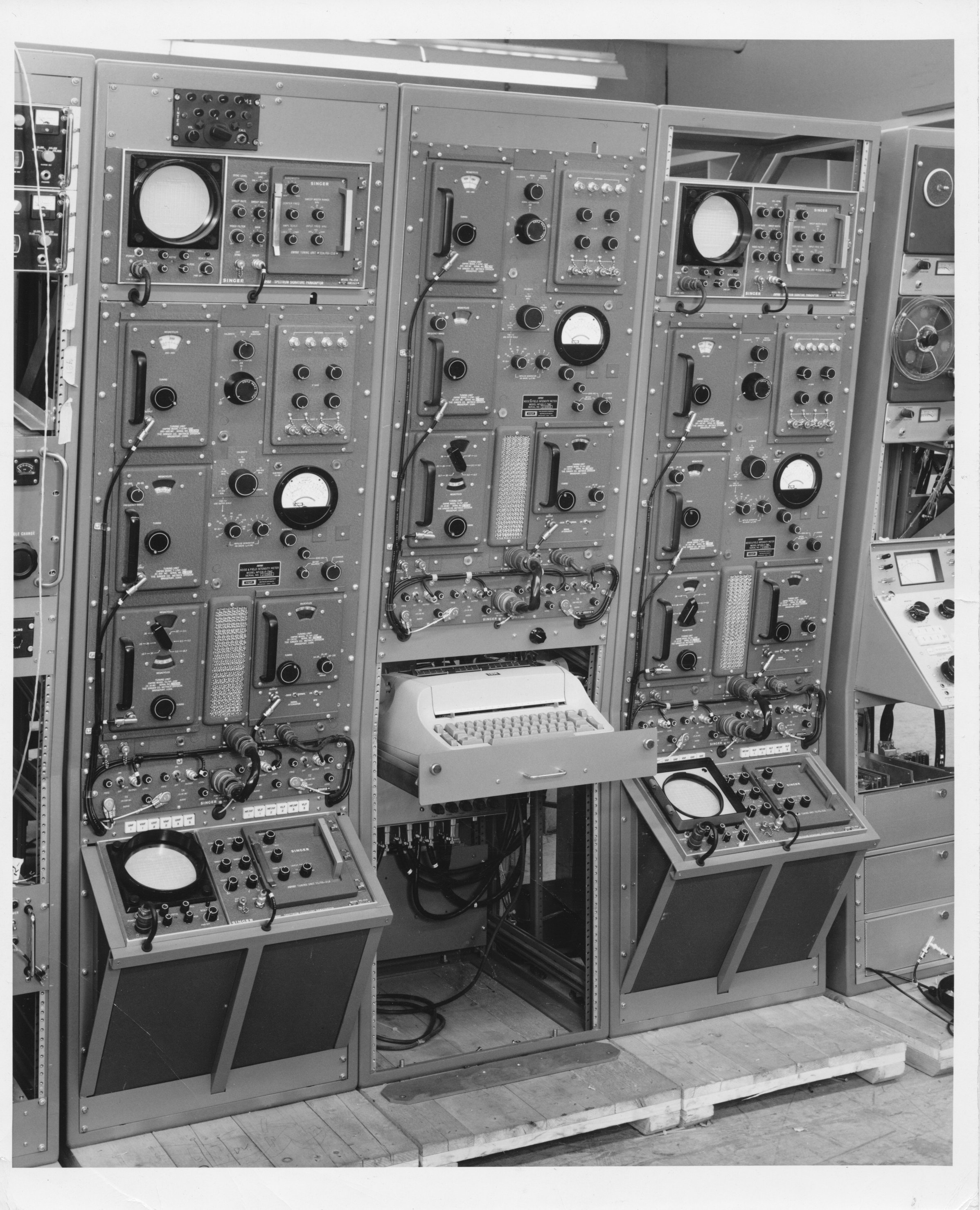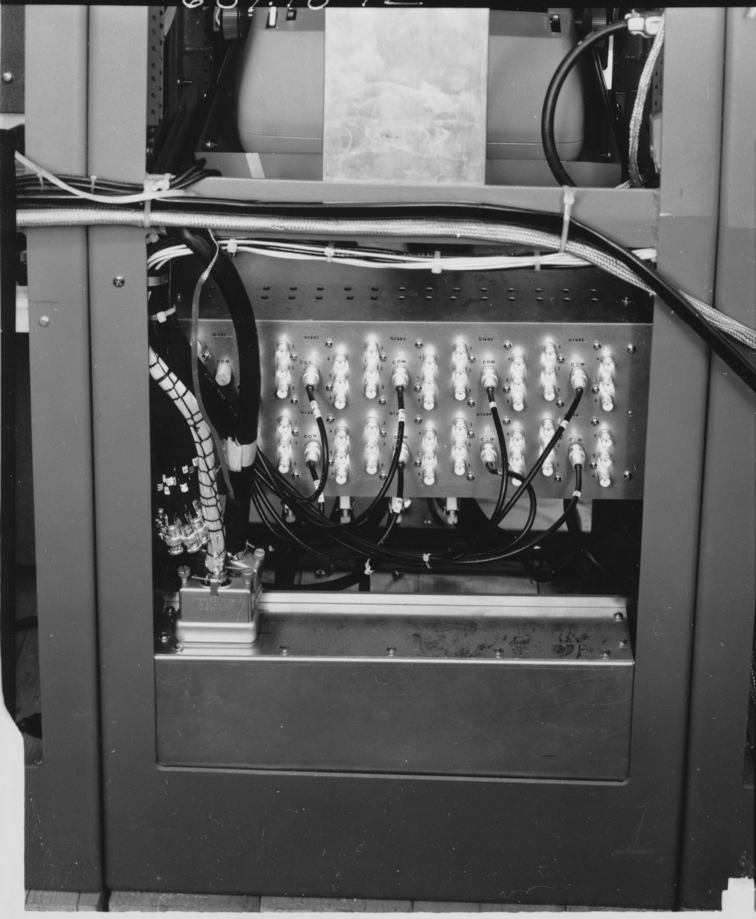 681.18-2  Units 14B and C 681.18-6  Units 16 A,B,C  These appear to be MIL VHF radios No number.  This photo of Units 16 A,B,C  was used in the 1968 Annual Report under "Avionics Installations" 681.29-8.  I believe this is the rear view of the GPT-10K modified for use in the Jenny Project.  Note the sloping top panels.  Also, the photo was stuck in a folder labeled "Blue Eagle".