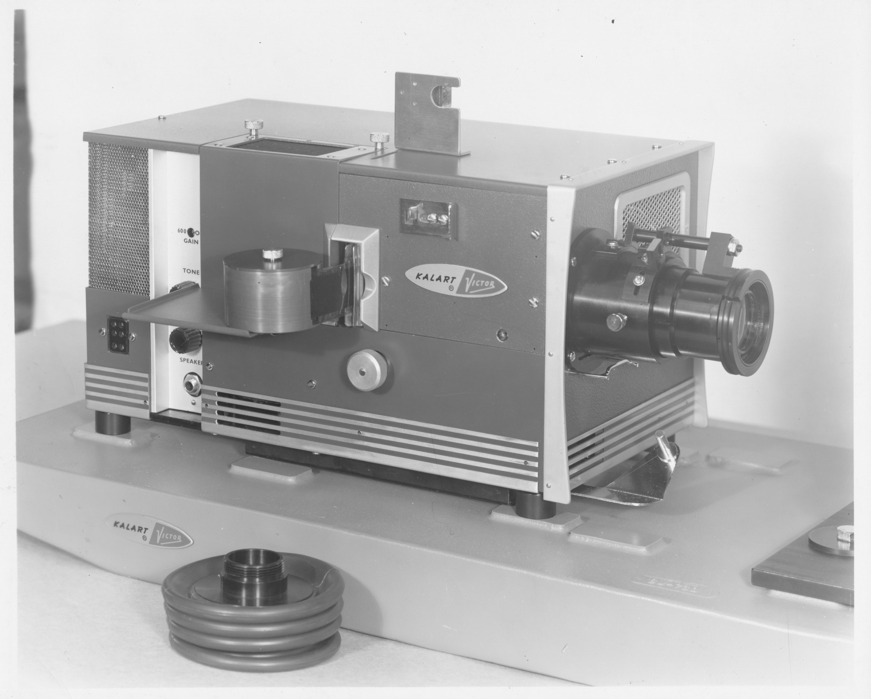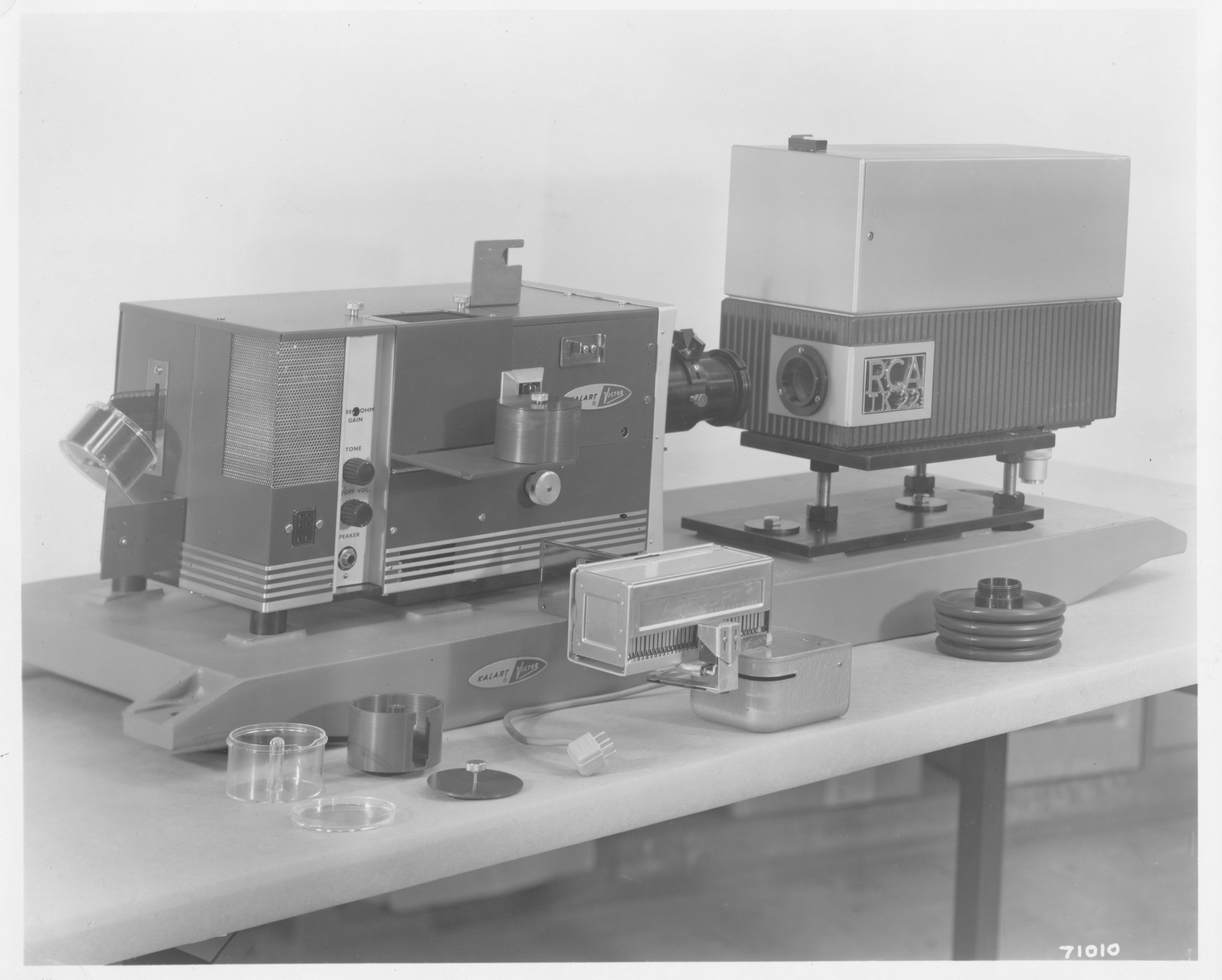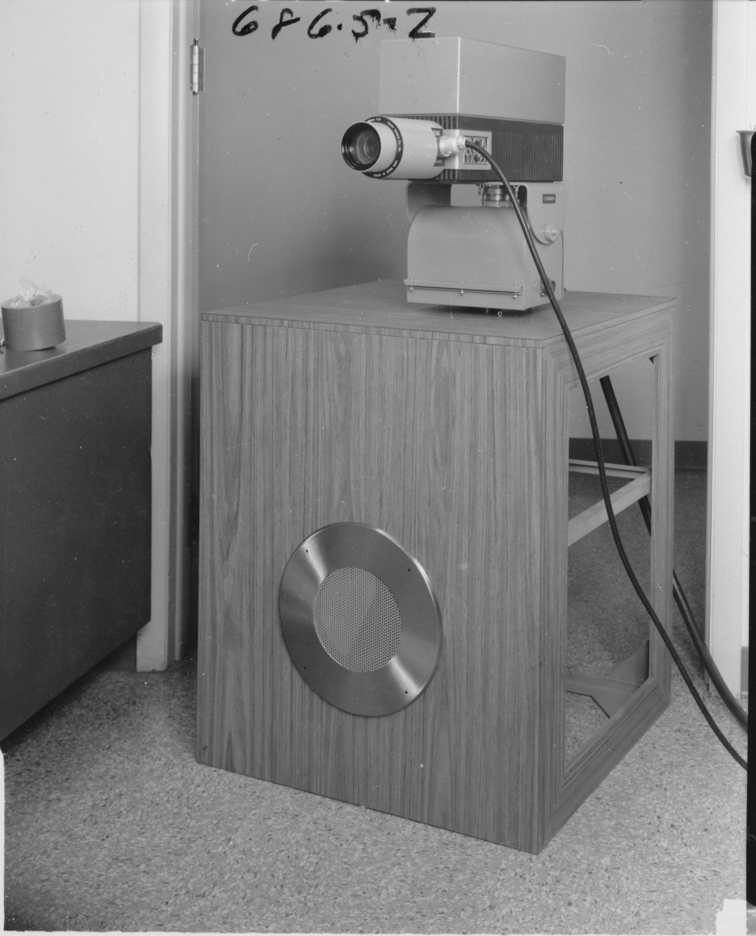 Not labeled, but obviously the film projector from the "camera chain". These two shots show closeups of the slide projector in the "camera chain". 681.15-5.  This appears to be a TV projection system.  Not clear what it was used for.