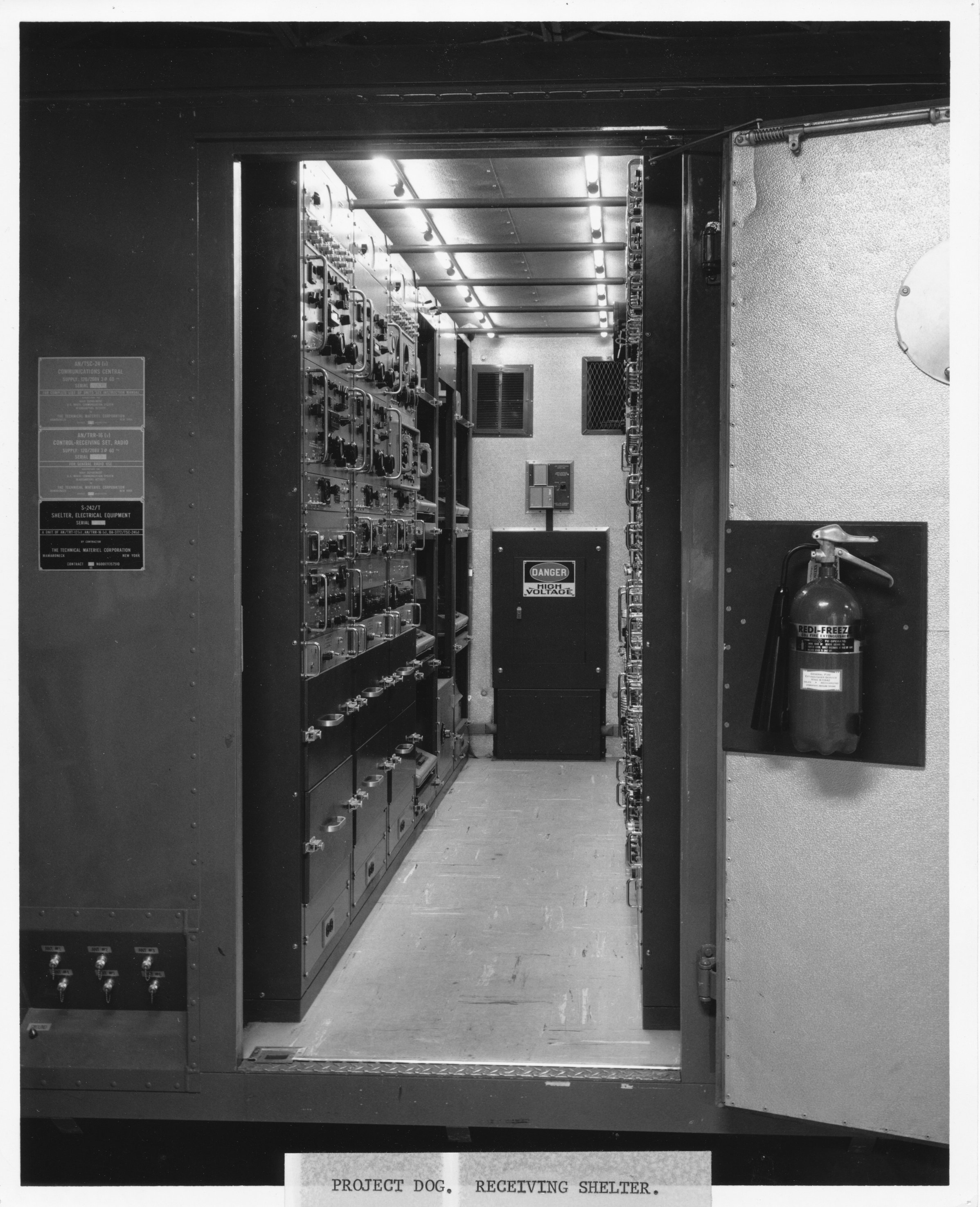 shelter equipment from the doorway. This view shows the VHF