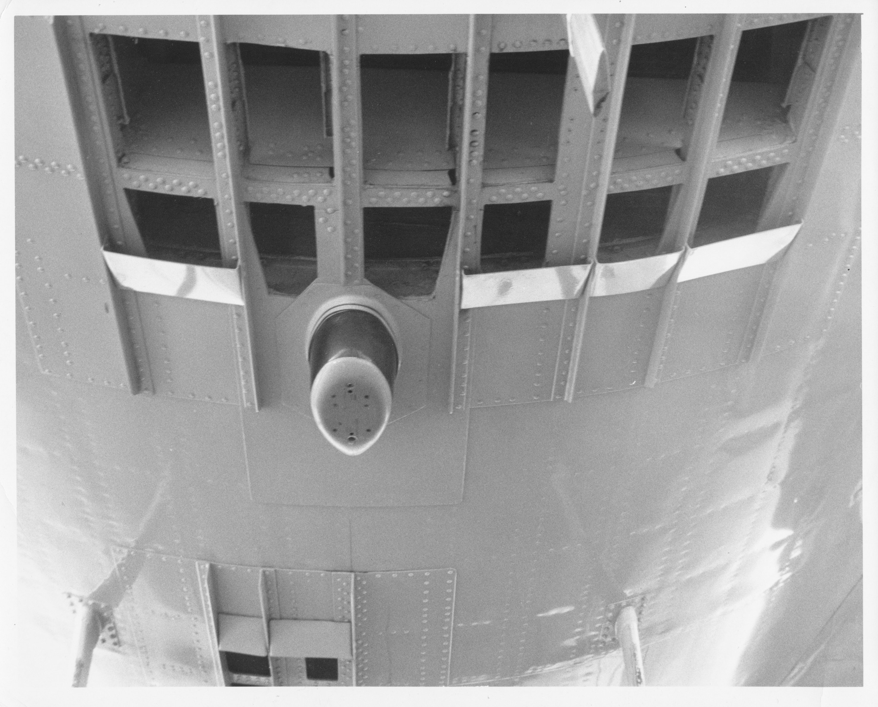 This photo shows the television equipped aircraft.  Note special TV antennas mounted below the fuselage. Back labeled:  "US Naval Air Station, Patuxent River, MD Photographic Laboratory.  Official US Navy Photograph"  This is almost certainly Blue Eagle I, the prototype aircraft. Back labeled:  "US Naval Air Station, Patuxent River, MD Photographic Laboratory.  Official US Navy Photograph"  This is also, most likely, Blue Eagle I. Info about this feature on the underside of the fuselage is in my notes:  I'll update it soon!