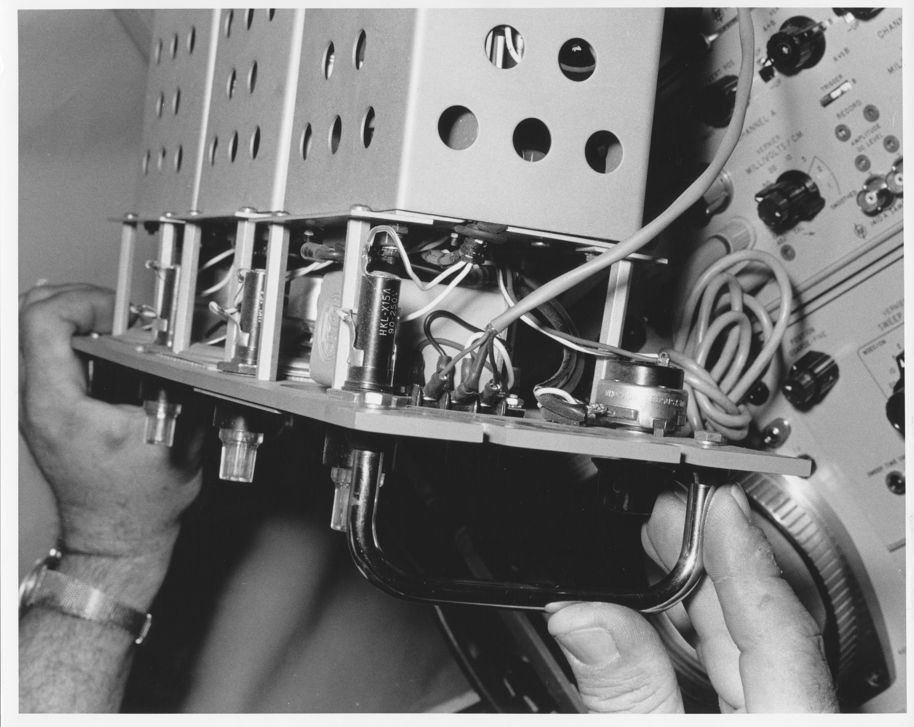 Not labeled, but obviously the film projector from the "camera chain". These two shots show closeups of the slide projector in the "camera chain". 681.15-5.  This appears to be a TV projection system.  Not clear what it was used for.