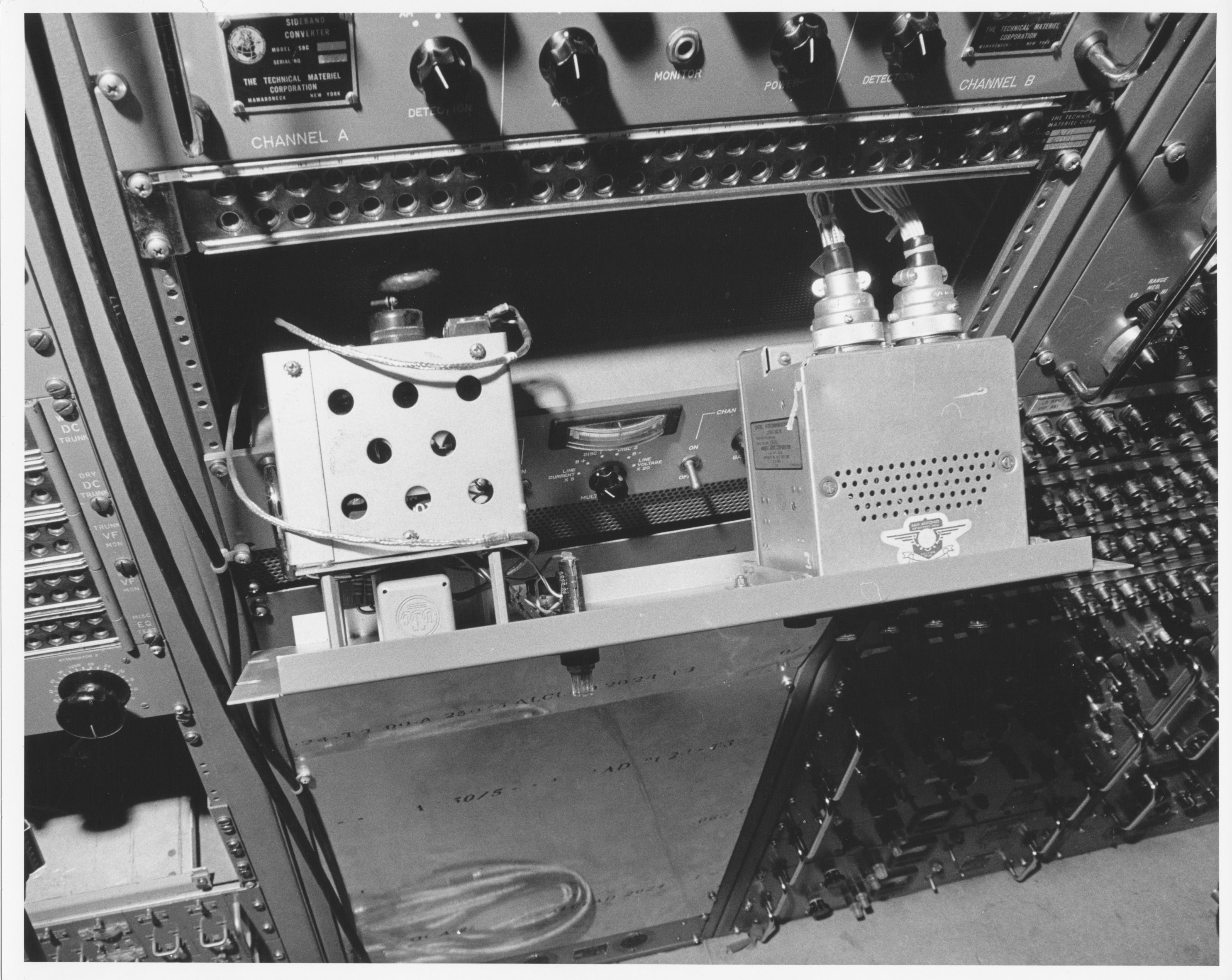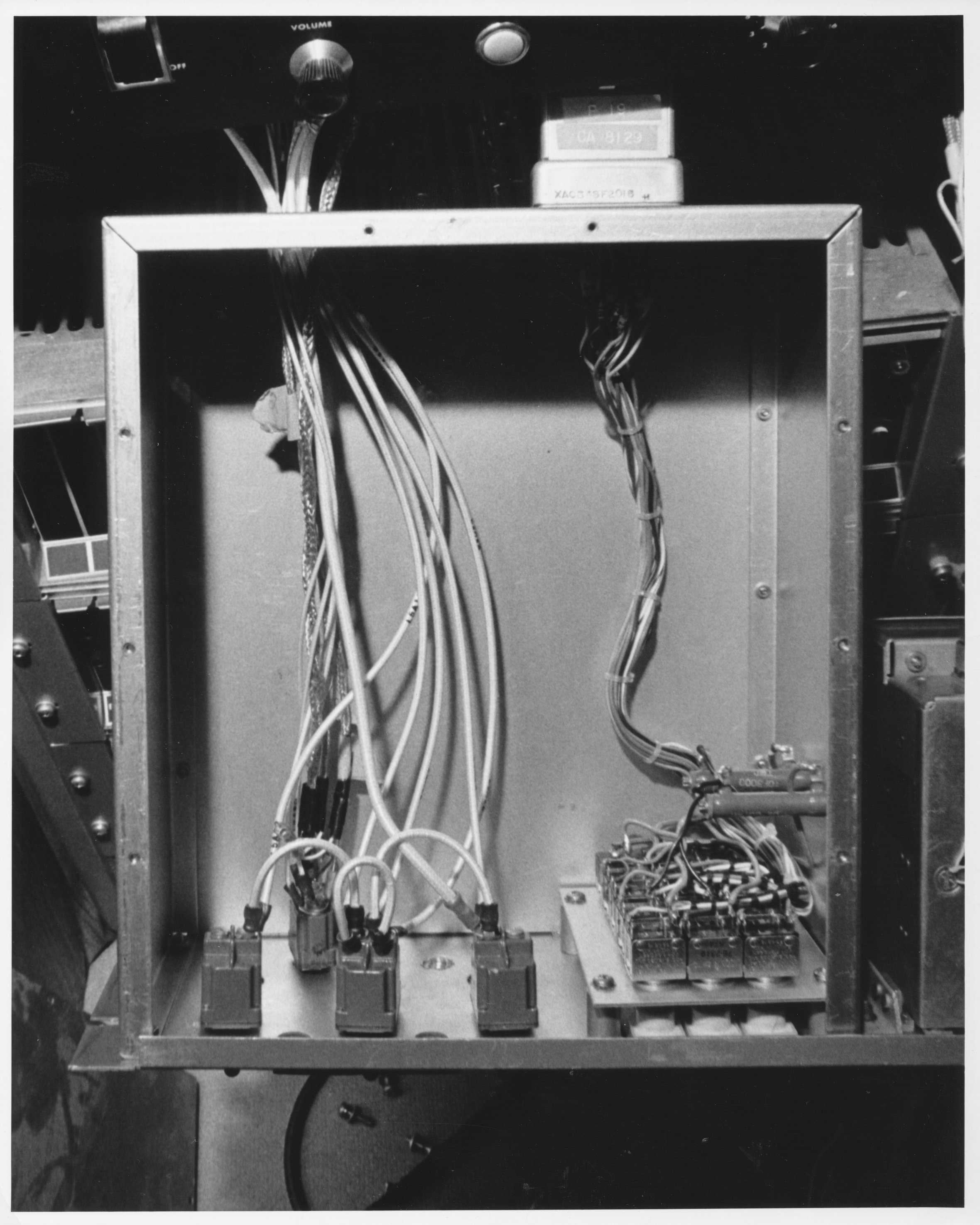681.18-2  Units 14B and C 681.18-6  Units 16 A,B,C  These appear to be MIL VHF radios No number.  This photo of Units 16 A,B,C  was used in the 1968 Annual Report under "Avionics Installations" 681.29-8.  I believe this is the rear view of the GPT-10K modified for use in the Jenny Project.  Note the sloping top panels.  Also, the photo was stuck in a folder labeled "Blue Eagle".